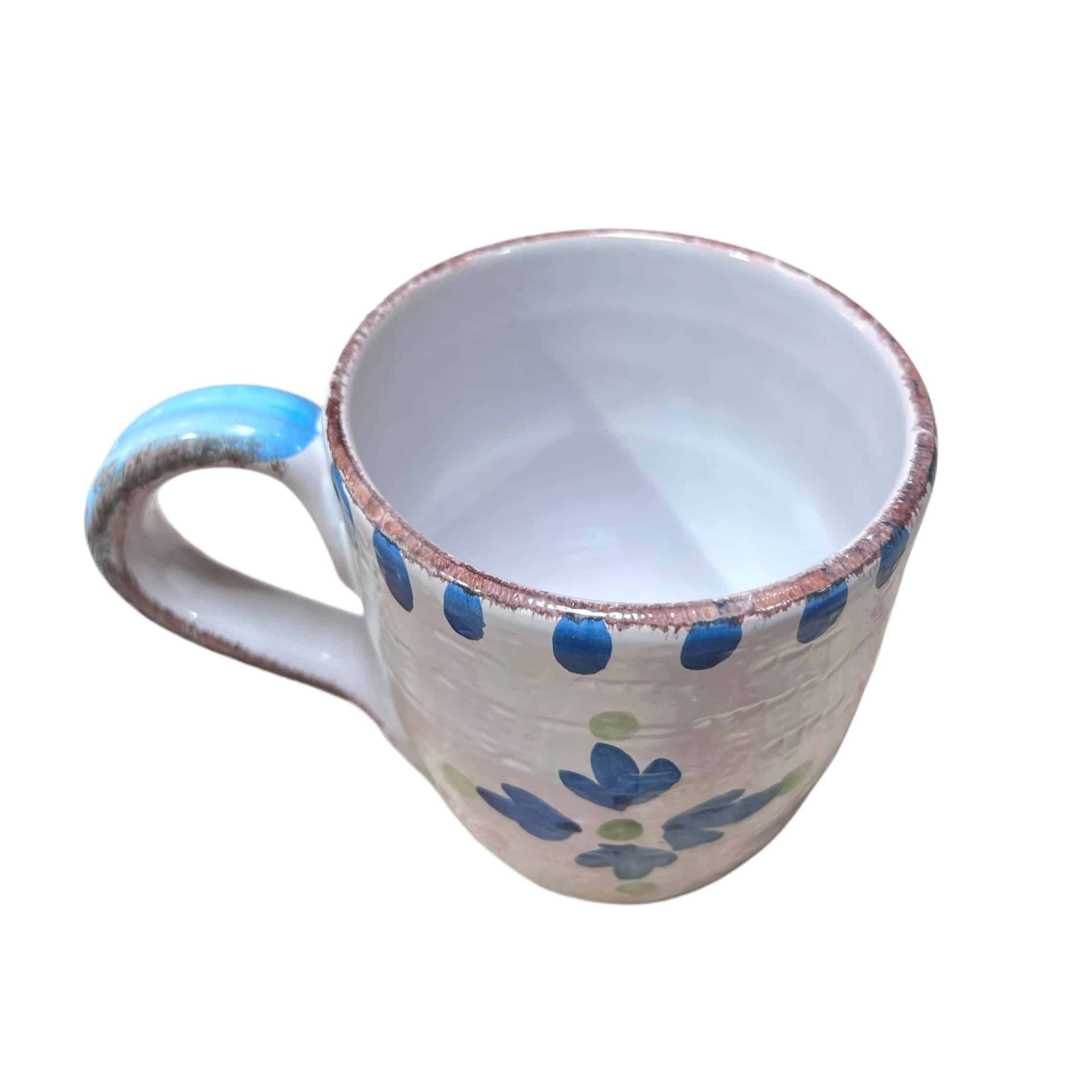 Make every step of your coffee or tea routine count when using this darling mug. Simple yet elegant, a new modernized line of Italian Pottery. Handmade and hand-painted in Italy. Dishwasher and microwave safe.