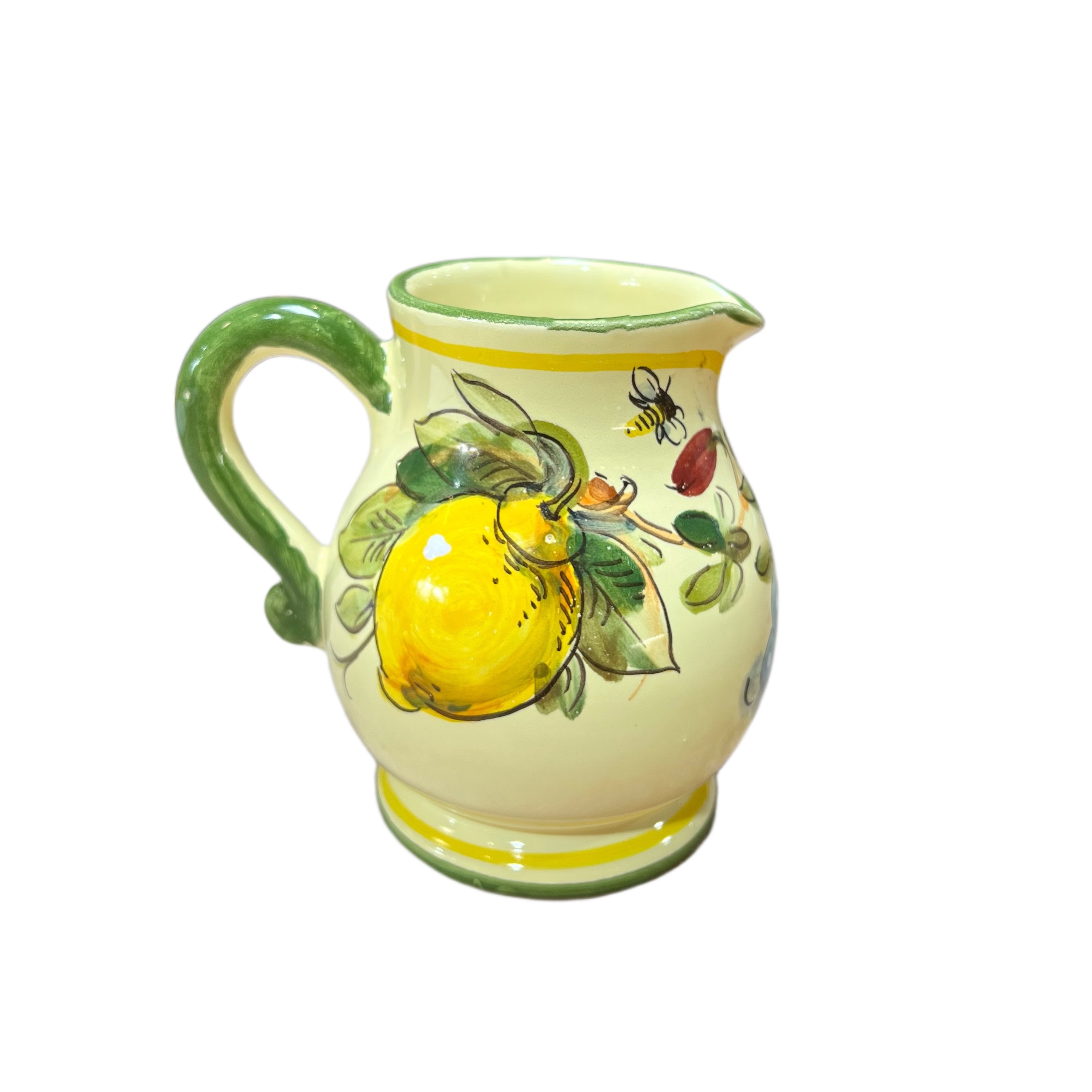 Introducing our Handmade Tuscan Ceramic Pitcher – a petite masterpiece from the heart of Italy. This exquisite little pitcher, meticulously crafted and hand-painted in Tuscany, brings a touch of rustic elegance to your table. Perfect for coffee creamer, it features a charming design adorned with delicate flowers and bees, adding a hint of nature to your morning routine. Elevate your beverage service with this authentic piece of Italian artistry, where every pour becomes a moment of refined simplicity and timeless beauty. Bring the warmth of Tuscany to your table – sip, savor, and enjoy!