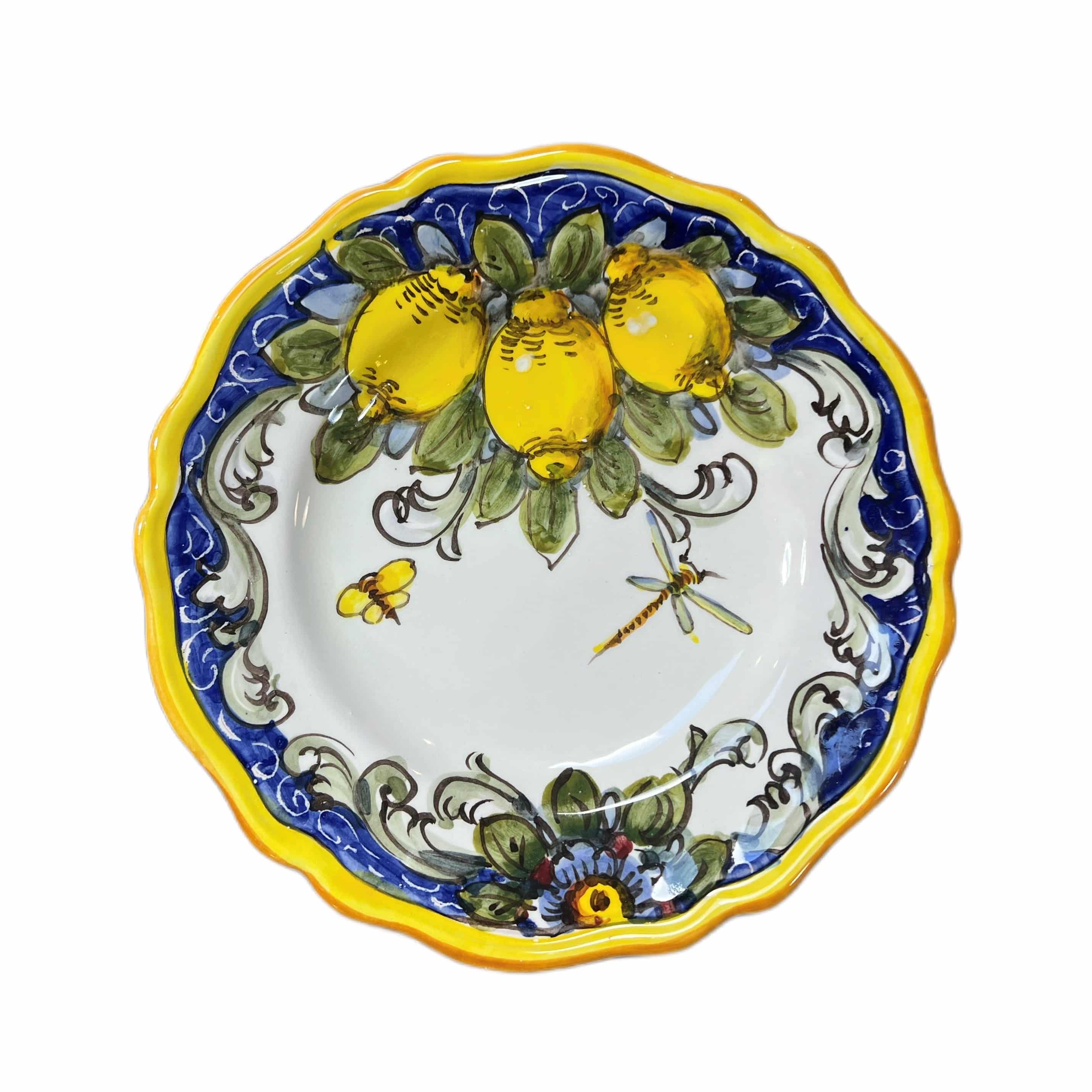 Volute, named for the classical scroll-work that comprises this opulent design, adds an elegant touch to your home with its luxurious colors and painterly spirit. The graceful curves of the warm, grey-green scrolls set on a cobalt background would be enough to please even the most discerning of Italophiles, but the bright lemons and sweet lemon flowers really seal the deal.