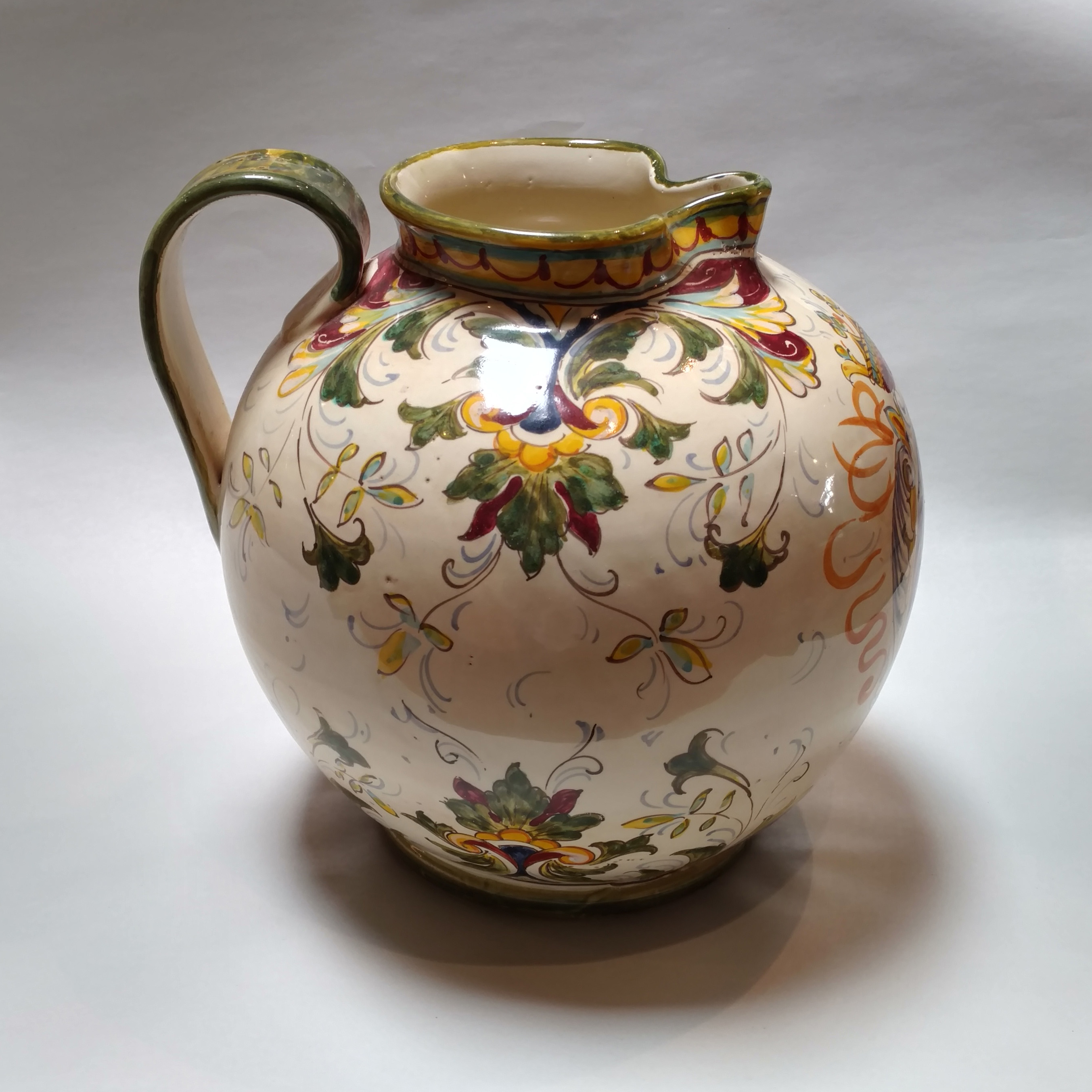 This beautiful large round pitcher makes a regal statement in your Mediterranean home.
