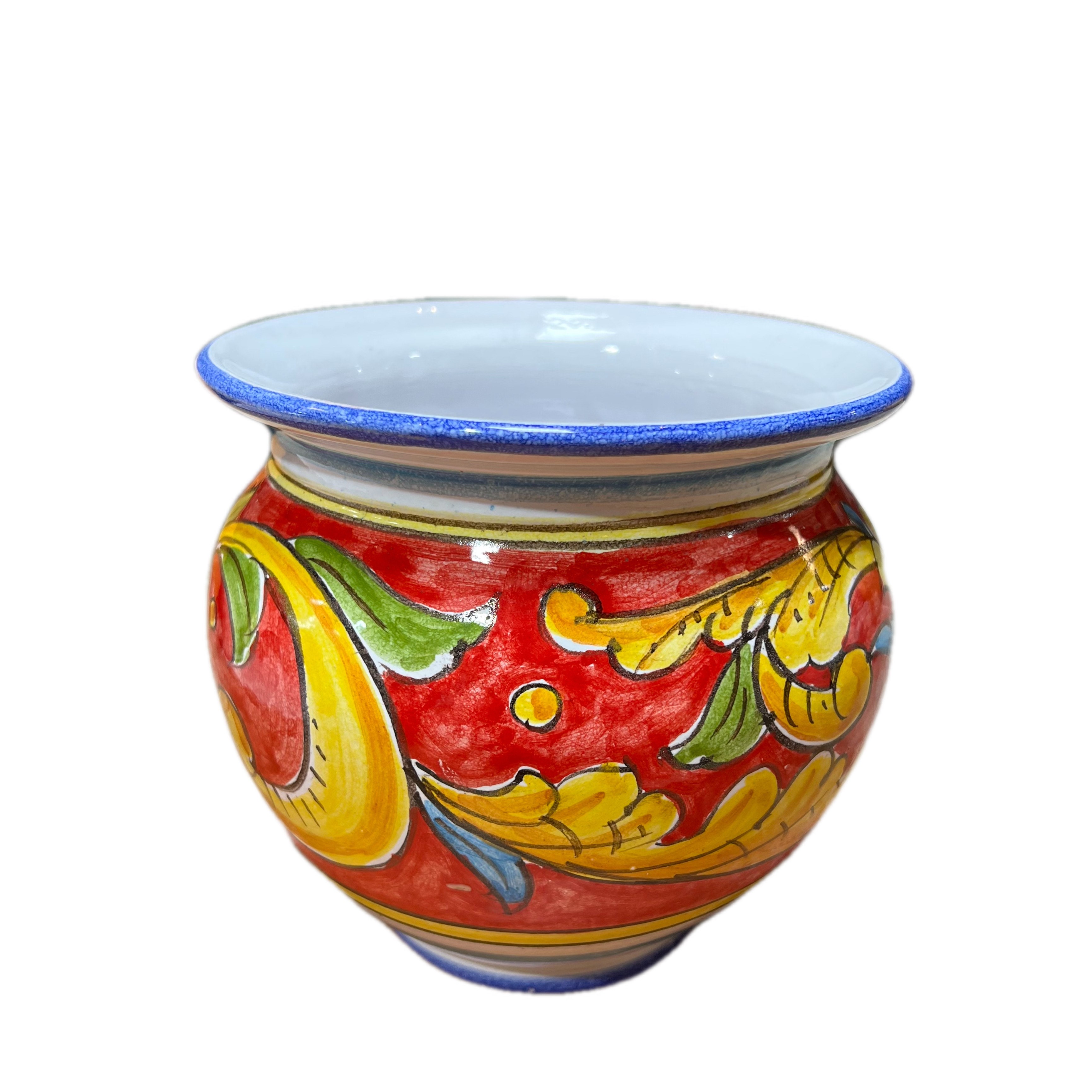 This lovely ceramic Sicilian cachepot adds Italian charm to any patio or garden or can be used as a pot for indoor plants.
