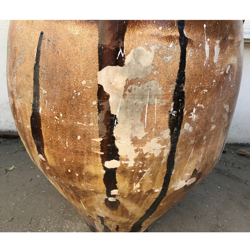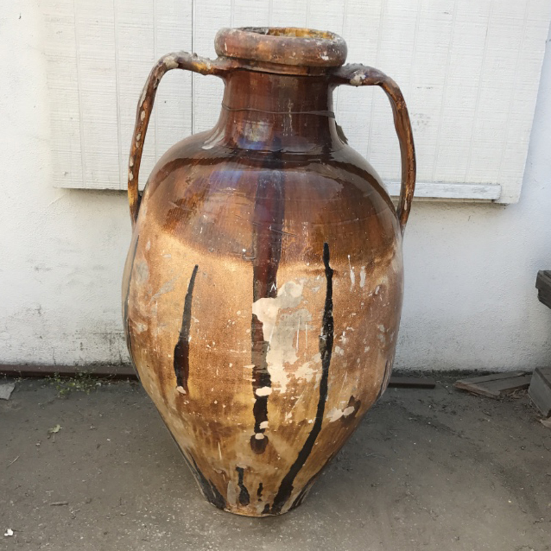 This particular giara measures 44.5” tall and has some dark glaze drips which you can see in the photos but is in good structural shape overall.